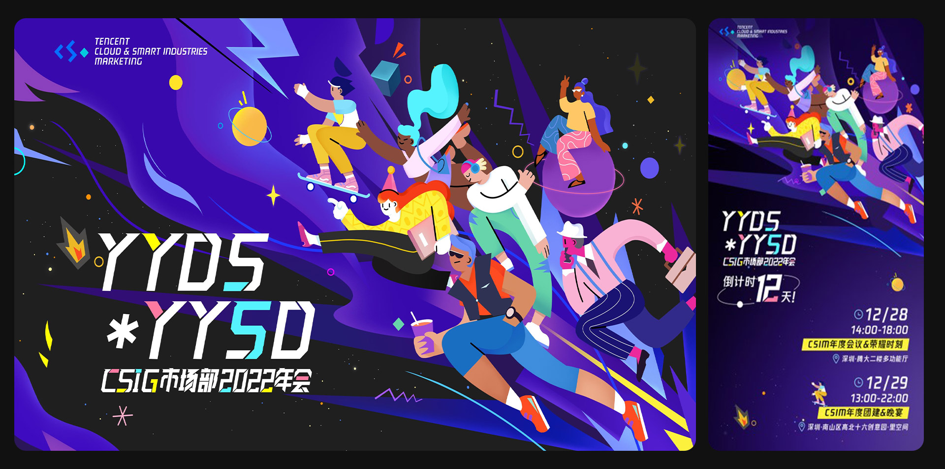 腾讯CSIG市场部在2022年元旦之际举办年会,年会主题需要体现出奋战业务目标,赢得信任成果,不惧挑战,继续在市场版图上开疆拓土。